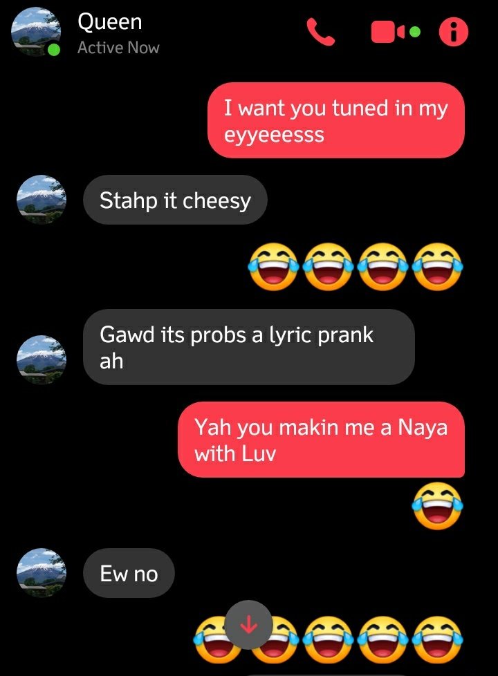 Pin On Fun Funny from i.pinimg.com One fun option is texting lyrics while the other person tries to continue a conversation. Don't be getting any ideas, now. If you don't know what to say, sometimes the best thing to do is respond with a gif. So many artists have songs about friendships, having a good time and living your best life. Song lyric prank lyric pranks lyric text prank funny song lyrics text pranks funny pranks funny text messages ms gs just for laughs. Having a few best friends to lean on is one of the most precious. We've made it to 200 subs thank you guys so much đ don't forget to follow my media's : There have been some classic songs that people fall for every time, and here are some of my.